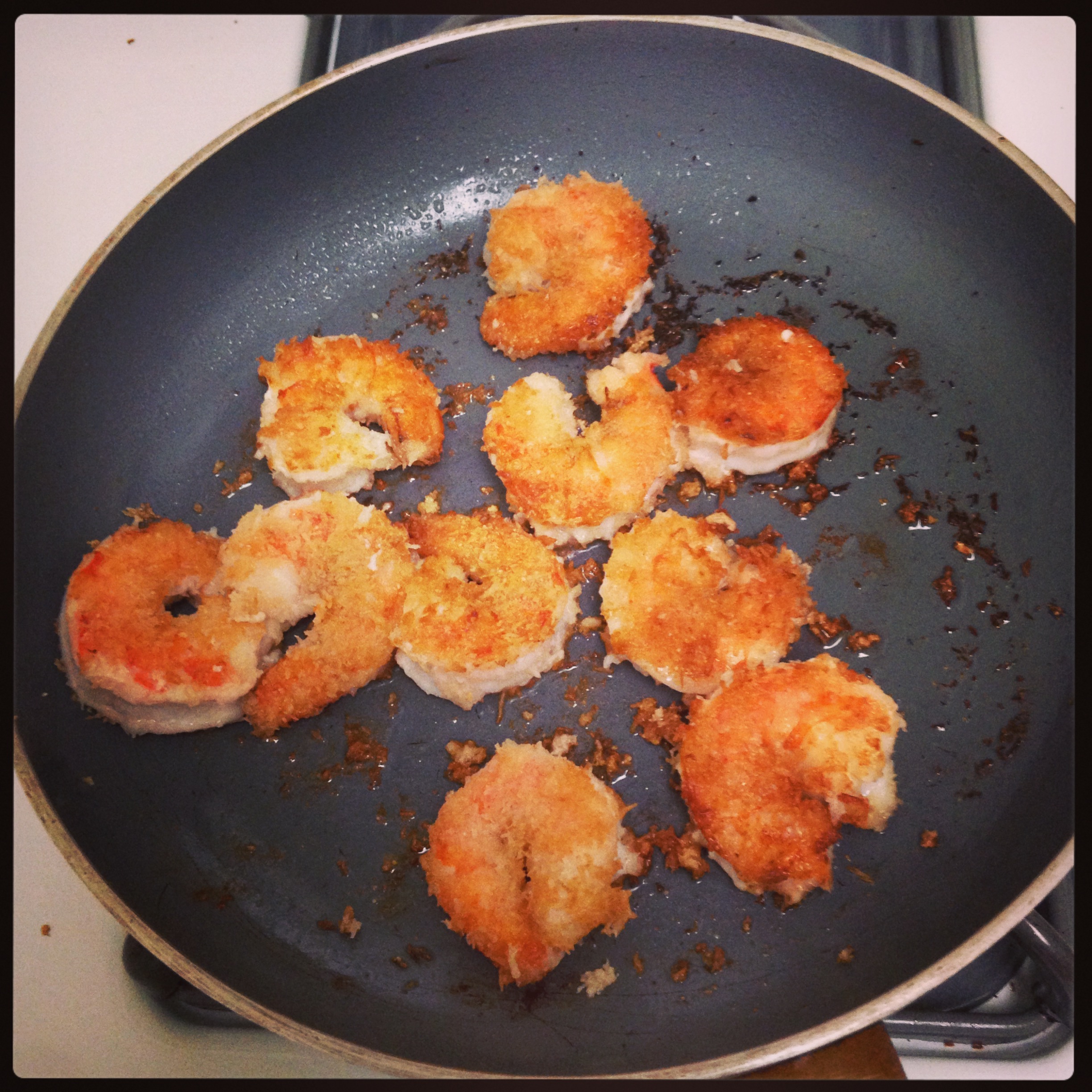 Place shrimp in warmed saute pan. Repeat with all shrimp.